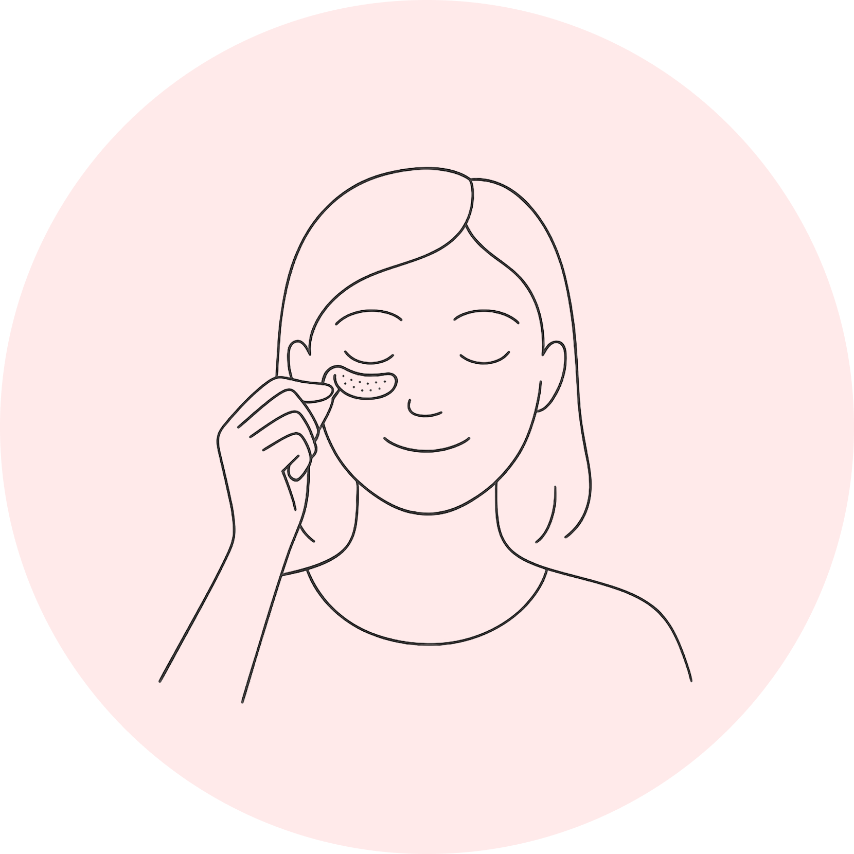 Start with clean, dry skin before bed. Remove the protective films and place both mask pieces on your face.